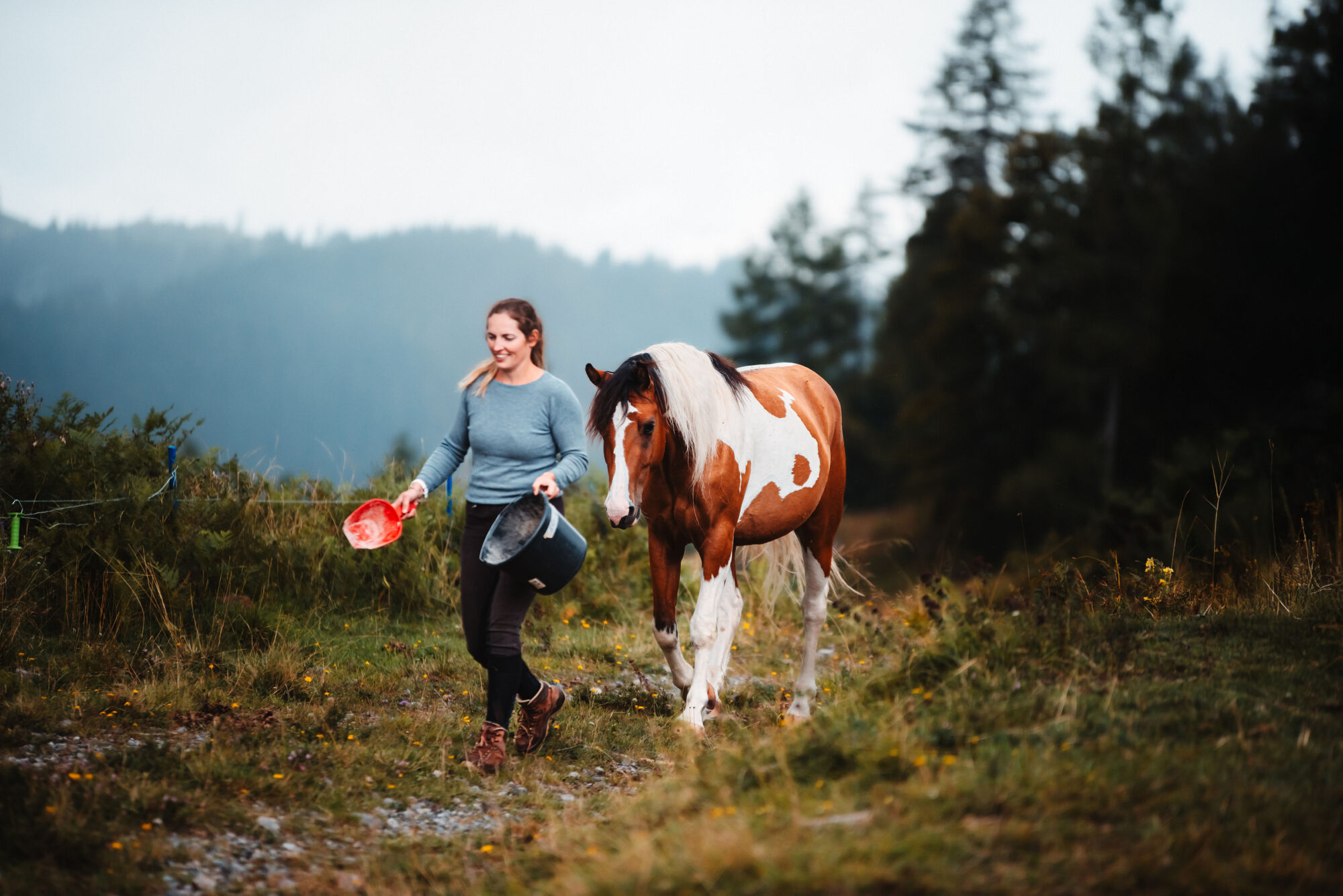 Die Stuten sind zum Teil im Reitbetrieb im Einsatz und in der Zucht. Unsere Stuten werden nicht regelmäßig gedeckt und kommen in den Zuchtpausen entweder zum Reiteinsatz oder dürfen ihre Auszeit auf der Alm genießen.